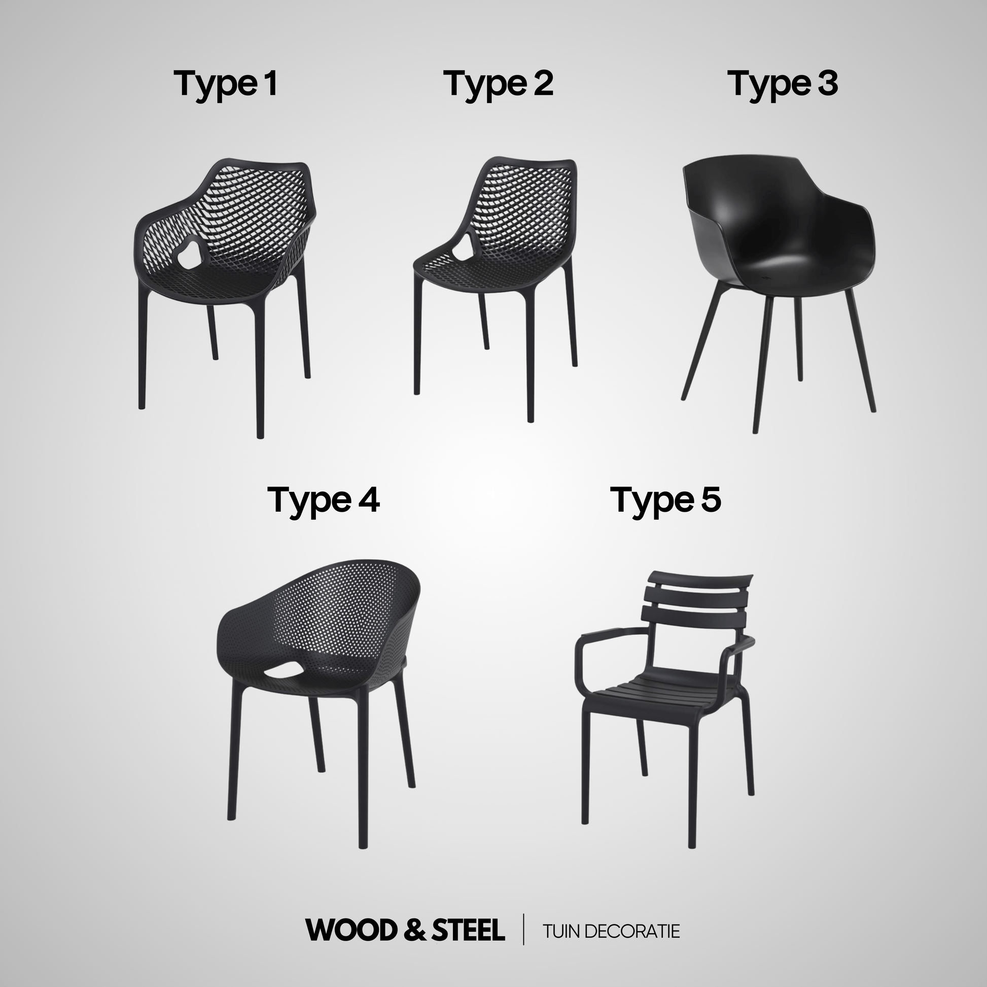 Kies uit 5 verschillende typen stoelen en stel zo jouw ideale combinatie samen.
