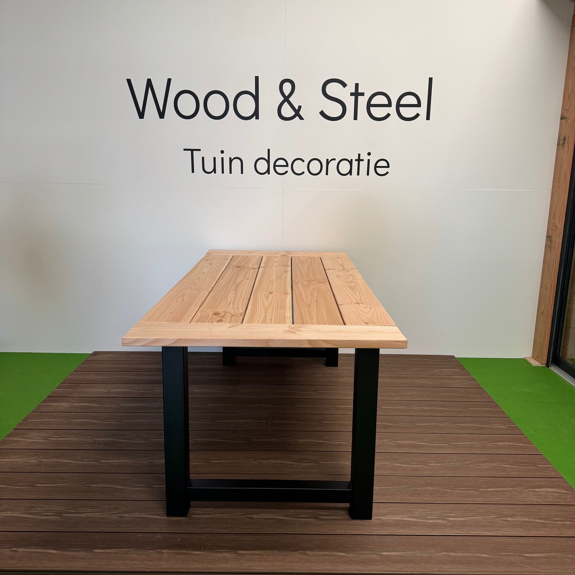 De Tuintafel H-Poot Luxe Blad van Wood en Steel Tuindecoratie combineert een strak en modern design met de duurzaamheid van hoogwaardig materiaal. Het H-poot ontwerp biedt niet alleen stabiliteit, maar ook een eigentijdse uitstraling, terwijl het luxe blad zorgt voor een verfijnde afwerking en een elegante look. Deze tafel, vervaardigd uit robuust douglashout, is de perfecte keuze voor zowel binnen als buitengebruik en voegt een stukje luxe toe aan je tuin, terras of interieur.